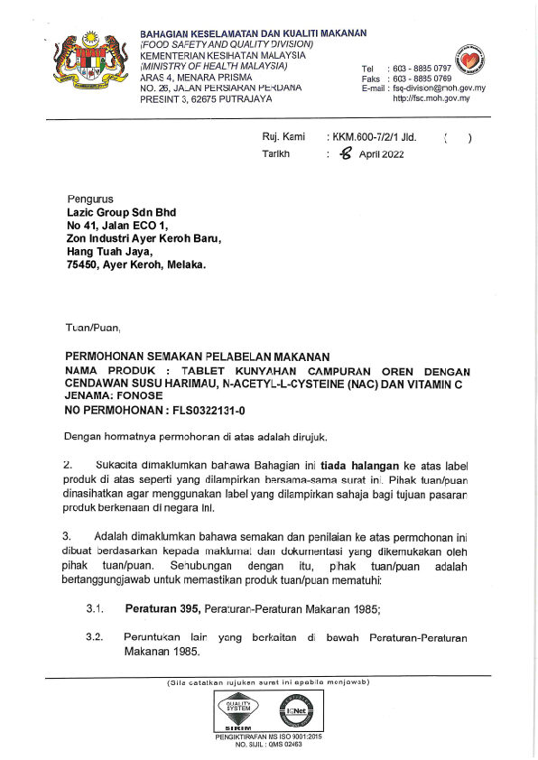 Fonose ini dirumus khas dengan bahan semulajadi dan tak de langsung bahan kimia yang terlarang. Dijamin selamat dengan Kelulusan KKM. Alhamdullilah setakat ini memang tak ada feedback negatif dari pelanggan tentang sebarang masalah komplikasi semasa amalkan Fonose.